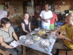 En route pour l aeroport, je me suis arretee visiter un vieux monastere en bois, celebre pour ses fenetres ovales, d ou on voit les moines en train d etudier. Ils sont une vingtaine dans une salle a reviser leur cours, en recitant leur lecon a mi voix, en se balancant la plupart du temps, et parfois ils partent dans leur pensee. Mais il y a un moine principal qui veille a ce qu ils etudient bien.