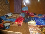 Arrivee a Bagan, un joli panneau avec mon nom m attend. Oui, j avais eu la bonne idee de reserver mon hotel quelques jours a l avance et quand j ai entendu apres quelques recits de toursites qui ont du souvent changer de chambre et d hotel car tout etait plein, j etais bien contente. On debarque en utilisant une planche et la main courante, c est une branche de bambou tenue a un bout et l autre par l equipage du bateau. Une grande bache est etendue sur le sol et on crie les numeros de nos bagages. Pas toujours facile a deviner….