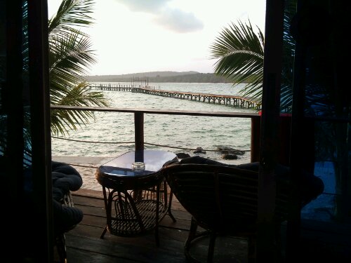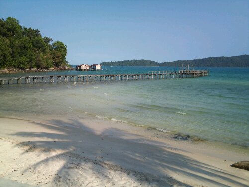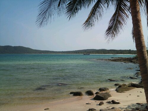Me voila arrivée après une deuxieme nuit à avoir l impression de dormir la tete dans les hauts parleurs. Donc quand j arrive au port après avoir pris un tuktuk soi disant organisé à l avance mais qui.arrive 15 min en retard car il n était pas au courant, que une fois sur le.bateau- il est 9h15- le capitaine m annonce qu on ne part que vers 11h, je suis ravie. Encore plus quand on me fait poiroter en me racontant des mensonges. Finalement j embarque à bord de.ce qui à l air d être un bateau privé qui après 10 min de route à des problèmes de moteur avec à.son bord que des.cambodgiens, mais transport que je.dois considérer comme une faveur. Bon j avoue que je ssuis finalement arrivee sur l ile comme si j étais partie à l heure. Et la c est chouette. Eau turquoise, plage sable blanc.
