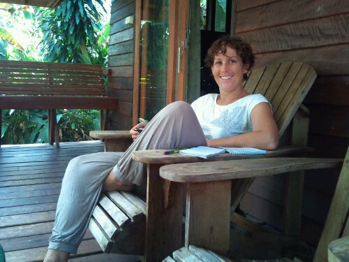 Ben finalement le jour 3 était.chouette. Je suis partie découvrir l autre côté de l ile. Il faut prendre un chemin qui passe au milieu de la foret et au bout de 20 minutes on arrive de la autre côté. C est une longue plage de sable un peu jaune avec des bungalows du lazy beach en bord de plage dans la végétation. Et j ai passé mon aprem entre la plage et la pièce commune. J ai regarde le début du coucher de soleil puis je me suis mise en route. Arrivee sur ma terrasse j entendais un tout petit peu les basses, mais la.soirée était.calme. J ai pu me poser,lire un peu et écouter l