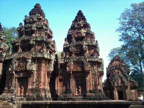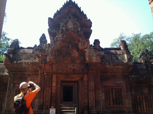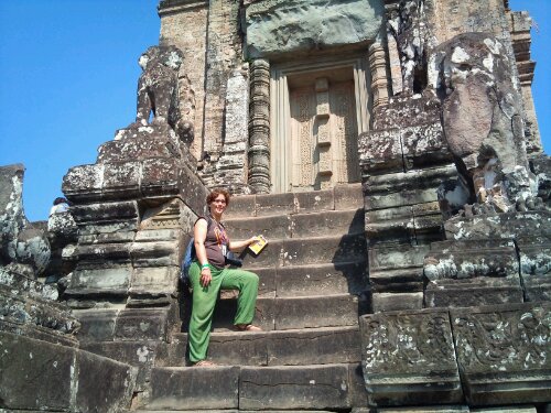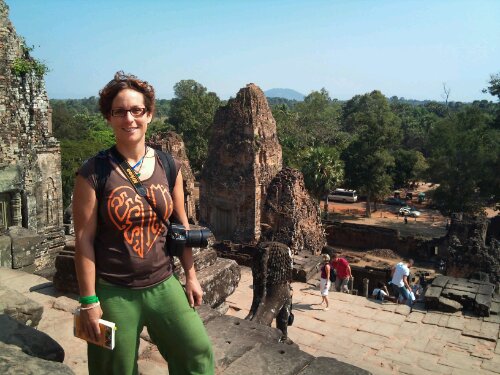 Après une bonne pause, on se remet en route. On emprunte une route légèrement bosselee qui passe à travers champs et rizieres. On arrive Phnom Sampeau. On monte sur la colline ou il y à des killings cave et un temple à mi chemin. Le temple est en train d être peint. Des couleurs vives, des aureoles aux couleurs vert et rose fluo. Les killings caves mis part que ca ressemble à une grotte partiellement ouverte avec quelques ossements derrière une vitrine, il est difficile de s imaginer la réalité de l époque.
