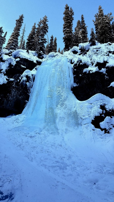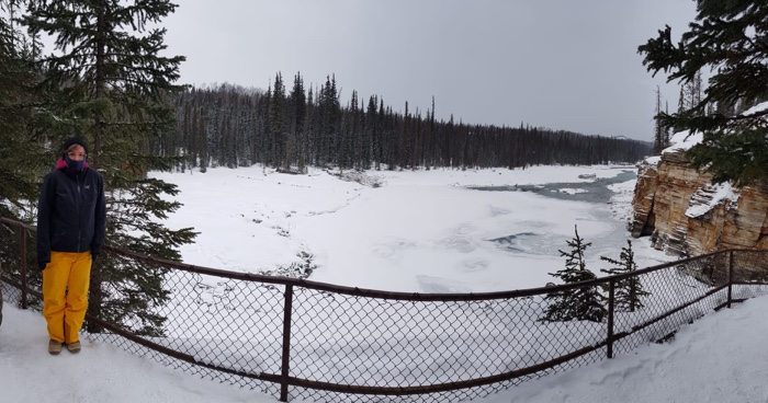 Finalement nous arrivons aux chutes d Athabaska qui était notre arrêt prévu et qui se trouve à quelques kilomètres de Jasper. Ici faire une photo ça se mérite surtout quand les gants ne sont pas tactiles.