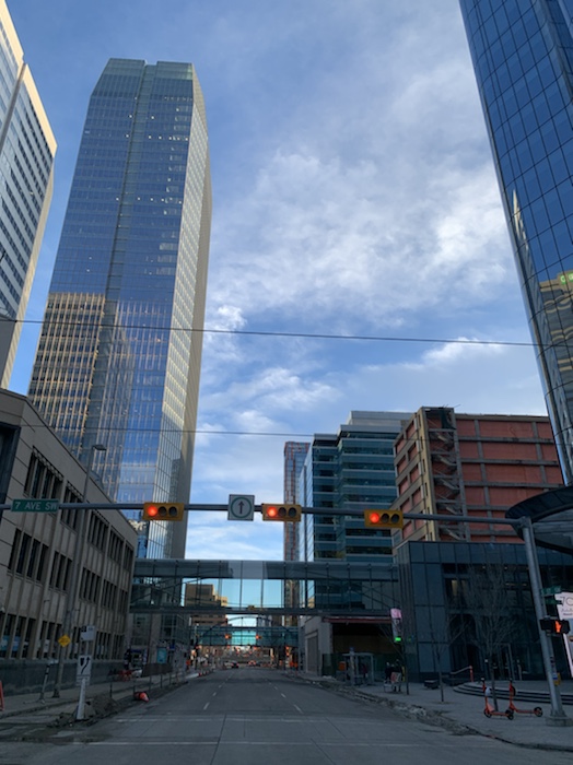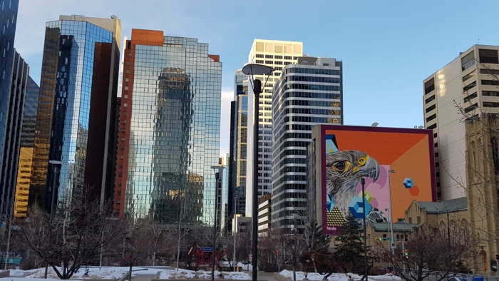L arrivée à Calgary est dépaysante. Au milieu des quartiers résidentiels, une forêt de gratte-ciels. Changement de décor.