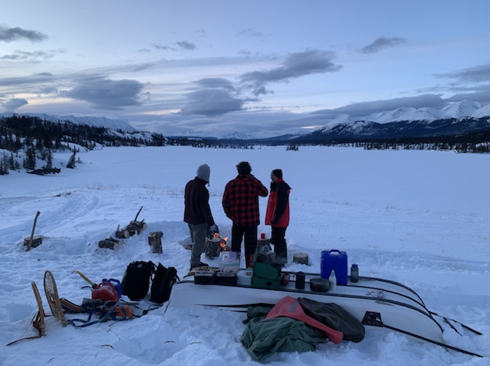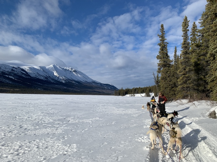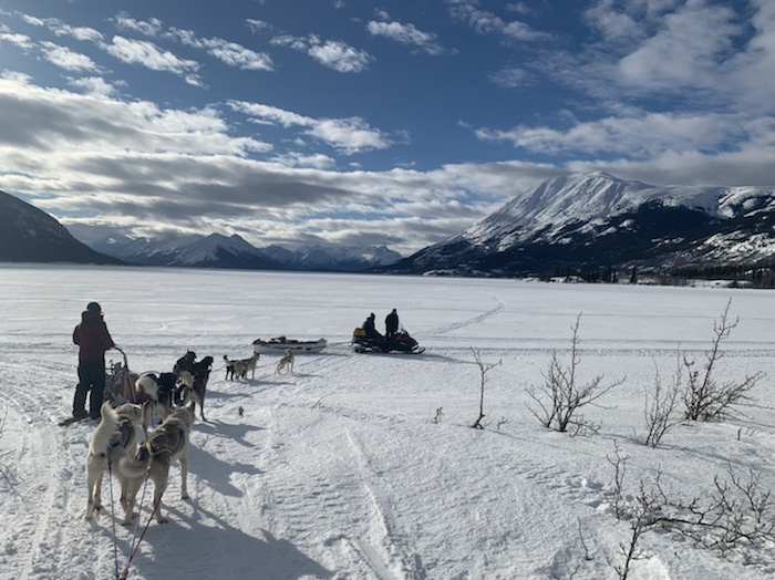 Samedi Bertrand notre « musher » et venu nous chercher à l hôtel et nous a emmené à Carcross, village à 70 km au sud de Whitehorse. Il nous a accueilli chez lui où nous avons préparé avec ses conseils nos sacs pour les prochains jours au milieu de son salon et de sa famille. C est un accueil très convivial. Nous rencontrons aussi Paul, un français qui fait du work and stay et qui nous accompagnera pendant les 5 prochains jours.