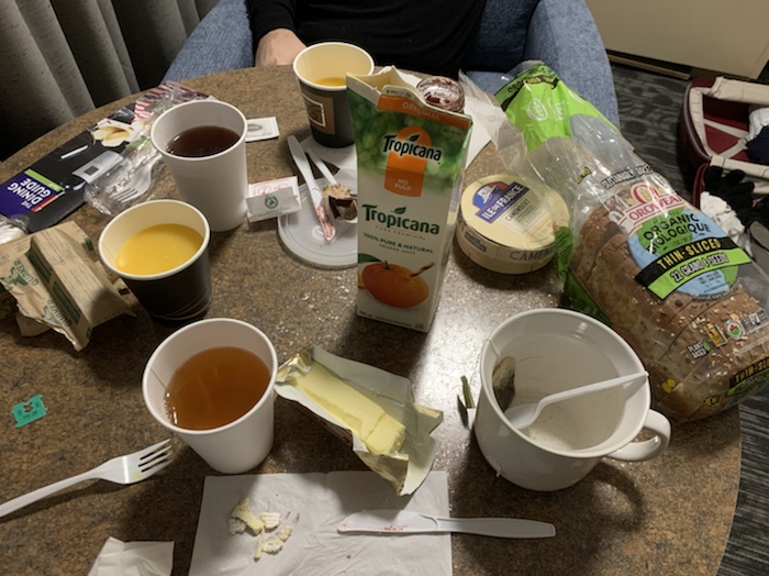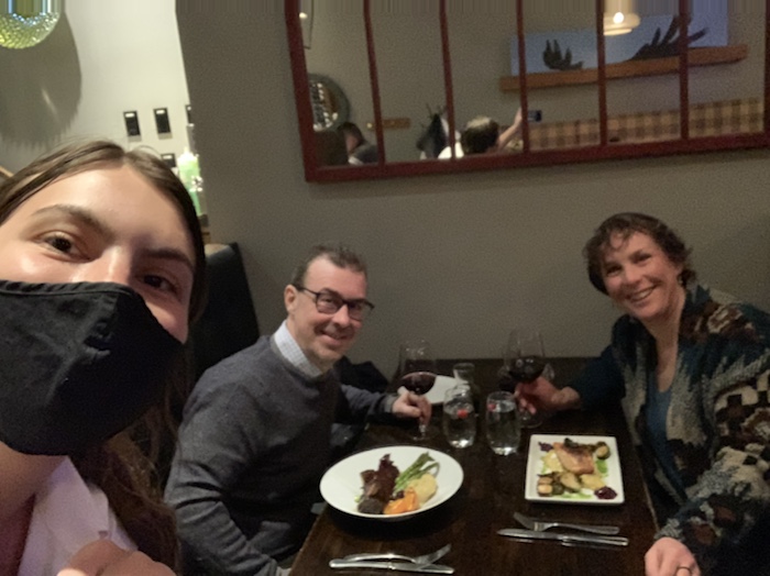 Petit souper tranquille en take away. On espère pouvoir aller skier demain … mais ils annoncent très froid …