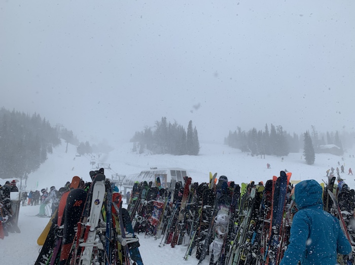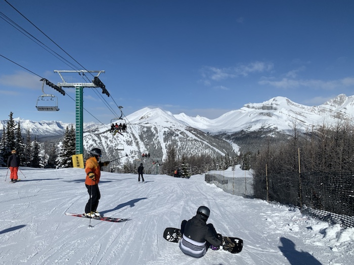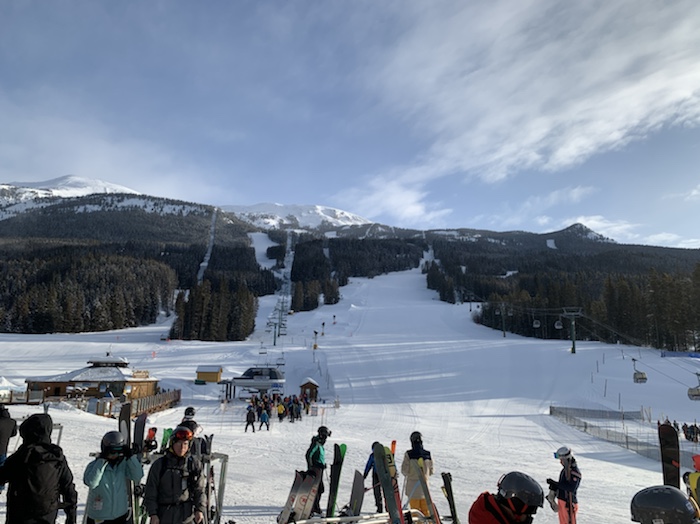 Ce matin après un petit déjeuner tranquille dans la chambre départ pour Sunshine Mountain. A 8.30 il y avait 3 km de bouchons sur le dernier bout, petit coup de stress ( on a réussi à choisir LA semaine des vacances scolaires) mais finalement c était tout bon. On a pu parquer assez prêt des cabines et il n y avait pas trop de queue au départ. il y avait au moins 7 personnes pour aider à charger correctement les cabines…. Et à peu près une dizaine de personnes pour aider à parquer …