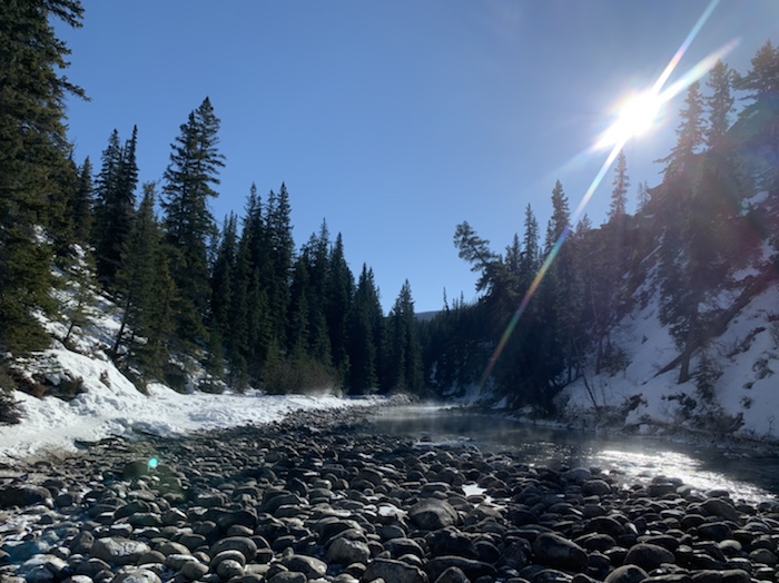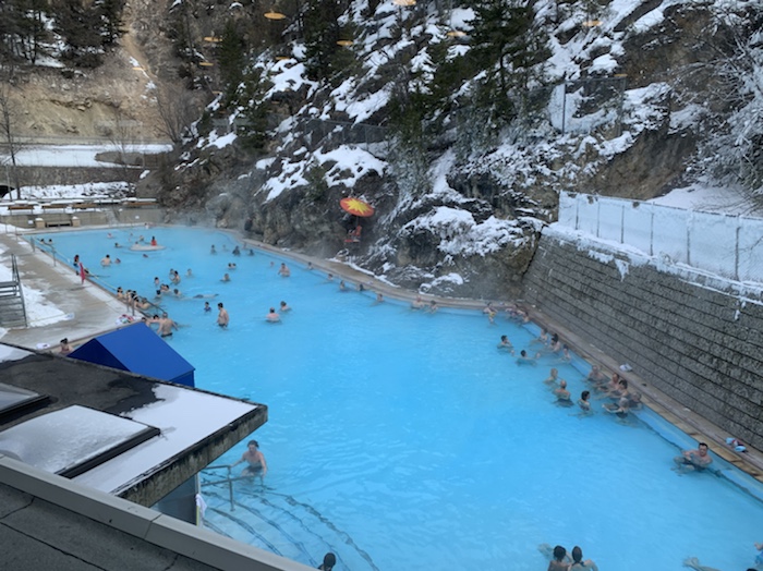 Voilà la dernière étape du voyage. Mais avant de rendre la voiture a l aéroport de Calgary, nous faisons un arrêt aux Radium Hotsprings dimanche matin. En fait, c est une grande piscine d eau chaude dans les rochers mais plus près de la route que pensé. En plus, il y a des hots tubs dans presque tous les hôtels, donc on a déjà bien profité de l eau chaude mais on y va quand même pour l expérience. Si une fois vous êtes dans la région, cela vaudrait la peine d expérimenter les Fairmont hotsprings, officiels et inofficiels, sur internet cela avait l air très chouette.