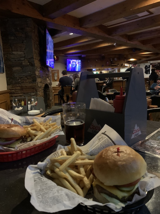 Il est temps de se remettre de toutes ces émotions, avec un bon burger au cabanon. Puis nous redescendons. Je suis toute surprise de cela car je pensais qu on retournerais s entraîner.