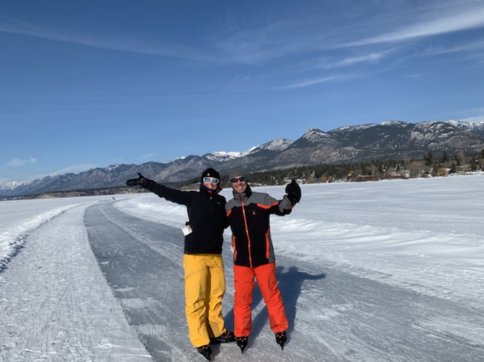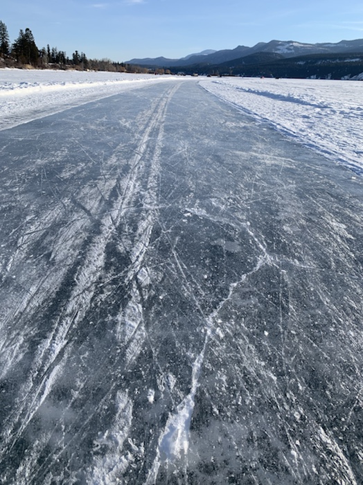 Nous avons découvert hier qu il y avait une piste de glace sur le lac qui normalement t fait tout le tour du lac. A la fin de la motoneige, on file donc louer des patins