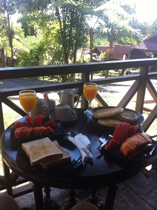 Arrivé vers 8hoo à l hôtel, nous avons commence par un bon petit déjeuner sur la terrasse, puis nous sommes partis explorer la région en microlet privé. C est ces petits bus bleus qui circulent d habitude entre les villages et qui fonctionnent avec le système jump in et descends quand tu veux. Nous pensions n avoir qu un chauffeur mais avons aussi eu un guide dans le package, ce qui était un peu moins heureux.