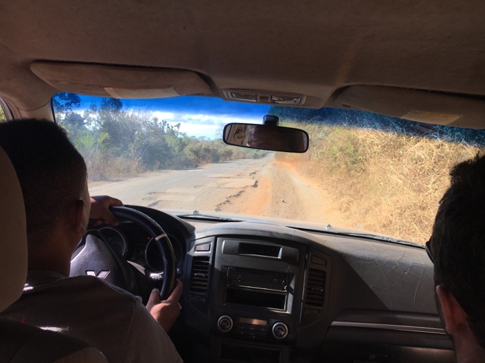 Le dernier jour de notre route, c est surtout de la voiture. Alors nous sommes sur une route nationale, la RN6, mais à part quelques tronçons intactes, c est une suite de trous plus ou moins grands. Parfois on roule à gauche, parfois à droite, parfois complètement à côté de la route, parfois à moitié sur la route à moitié sur le côté. On traverse les villages, et par régions ils se spécialisent dans quelque chose: les balais, les noix de cajou, les paniers tressés, …