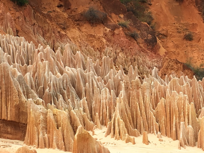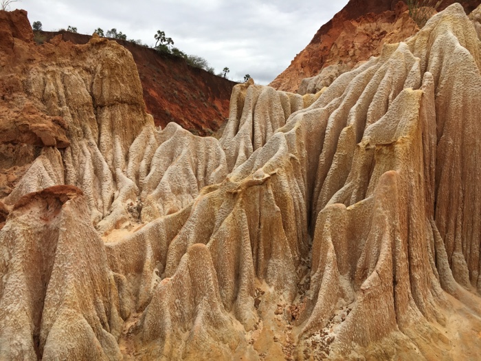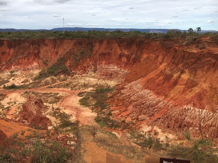 Le jour suivant nous avons été au tsingy rouge. On les découvre la première fois depuis un point de vue en hauteur. La vue sur ce canyon est incroyable. Du rouge, du jaune, du blanc et un peu de vert. Et une structure. Par l suite on s en approche par un circuit très contrôlé et touristique avec des barrières et une boucle à suivre.