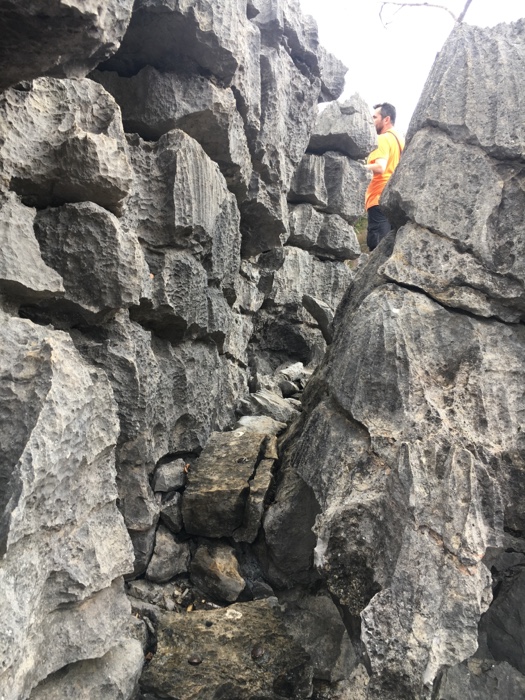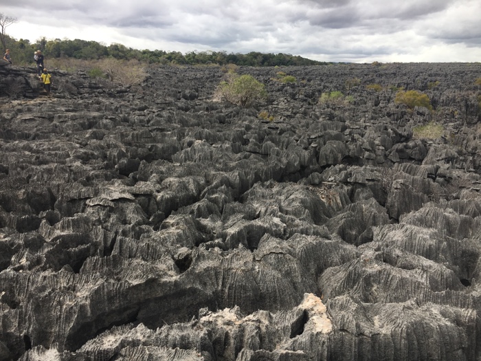 équipé de nos baudriers, nous entamons cette sorte de via Ferrarta qui nous amène au sommet des tsingys. On avance à la queue leu leu. La vue est superbe. Nous traversons tout un pan de montagne avant de terminer la boucle à nouveau dans la forêt. Le ciel est tout gris. Et nos guides s inquiètent pour l état de la piste s il venait à pleuvoir. Ce qui n est pas arrivé.