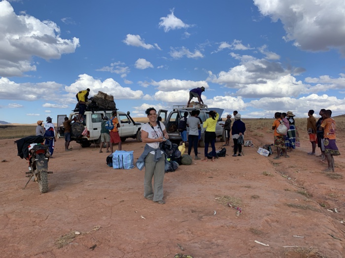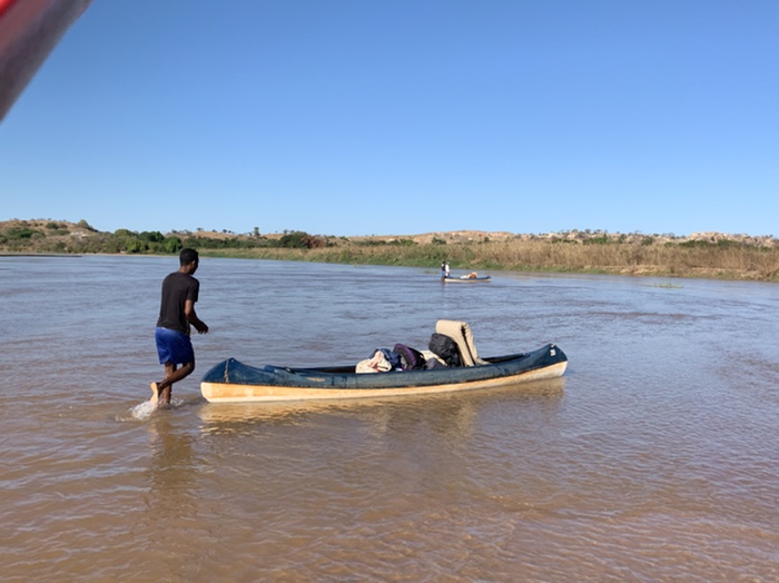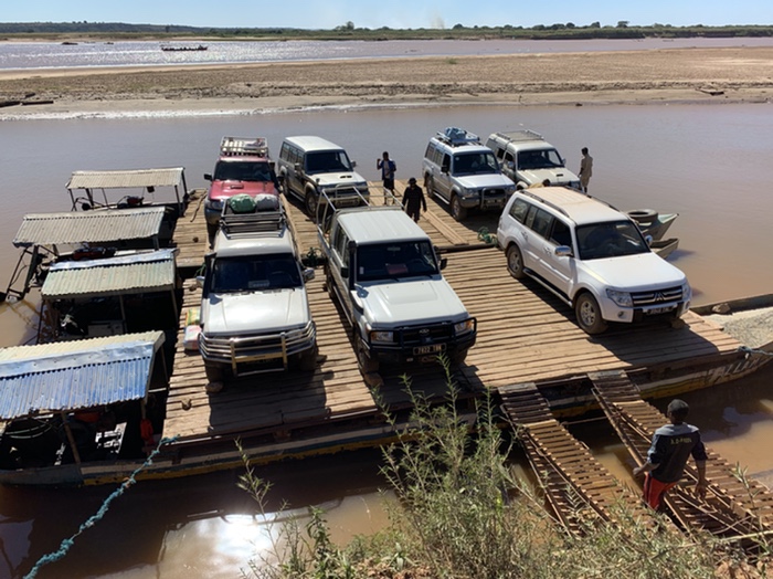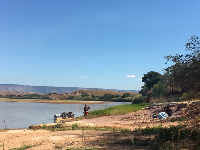 Le lendemain toutes les 4×4 se donnent rendez vous Le Matin pour se suivre ensuite jusqu à Belo sur Tsirivihina. La nous faisons une pause déjeuner avant de remonter un bout de la rivière en bac.