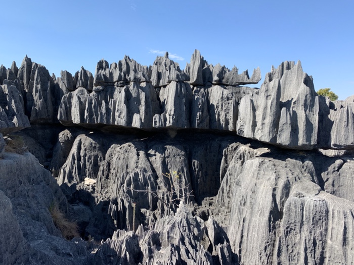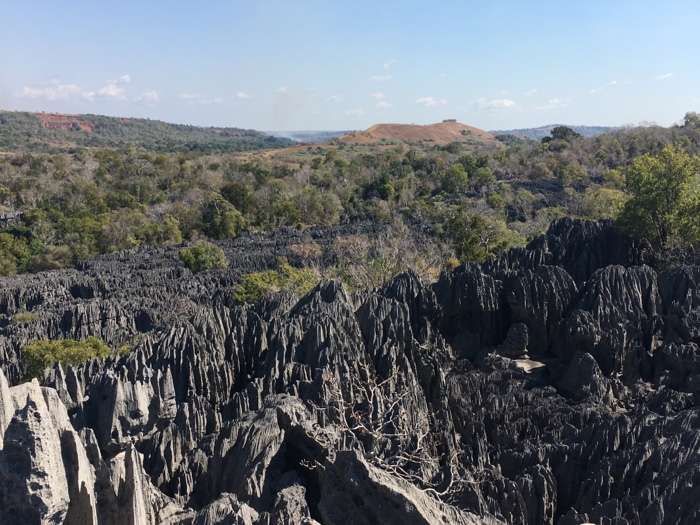 Le jour suivant nous avons été au tsingy rouge. On les découvre la première fois depuis un point de vue en hauteur. La vue sur ce canyon est incroyable. Du rouge, du jaune, du blanc et un peu de vert. Et une structure. Par l suite on s en approche par un circuit très contrôlé et touristique avec des barrières et une boucle à suivre.