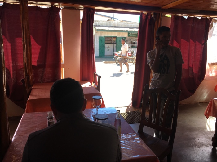 Le jour suivant petit tour en ville Le matin puis départ pour l aéroport car nous retournons à Antananarivo pour une nuit avant de partir au nord. Bon mis à part que notre vol avait 3 heures de retard ce qui fait que nous avons passé notre après midi à l aéroport plutôt que dans le joli hôtel réservé à Tana dans ce but. Par contre nous avons eu le temps de souper avec Ando qui nous a accueilli par surprise à l aéroport.