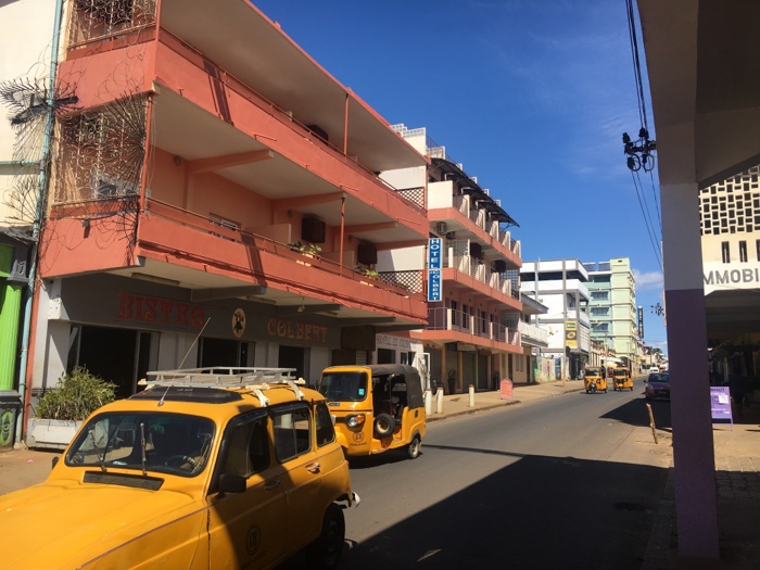 La montagne d Ambre est une forêt tropicale. Changement de climat et une végétation très verte avec des grands arbres, fougères et palmiers. On s y promène d une cascade à l autre. On y découvre des caméléons qui ne sont pas plus grand que l largeur de mon pouce et une espèce de lémuriens que nous n avions encore pas vu. Le soir nous logeons à Joffreville. On ne peut pas appeler cela une ville. Il y a une grande rue pavée avec des maisons coloniales autour en plus ou moins bonnes états. De nombreux bâtiments en dur de l époque coloniale sont tout simplement à l abandon. Quand on s éloigne de la rue principale, on retrouve des chemins en terre, et des maisons en bois ou tôle en plus des anciennes demeures qui avaient des jardins monstrueux. Notre hôtel est une ancienne maison coloniale. Nous avons très bien mangé dans ce cadre d époque qui nous donnaient l impression d être hors du temps. De plus l électricité n est présente qu en début de soirée.