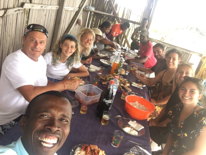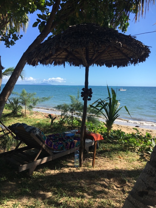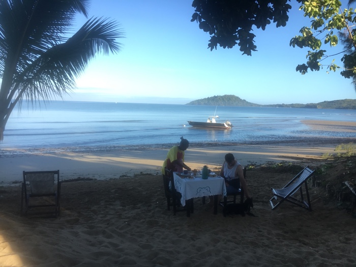 En effet notre route de Diego vers Ankify, nous a demandé moins de jours qu estimé. Nous sommes très heureux de nous poser et de profiter du cadre avec un bon livre ou juste à paresser entre les excursions. Nous logeons à l Aladabo qui vient d être repris par un français. Nous avons la chance d être les seules clients de l hôtel. Chaque matin on déjeune les pieds dans le sable et chaque soir le chef et sa compagne nous cuisine un petit plat. Et avant souvent on l accompagnait au village boire un apéro.